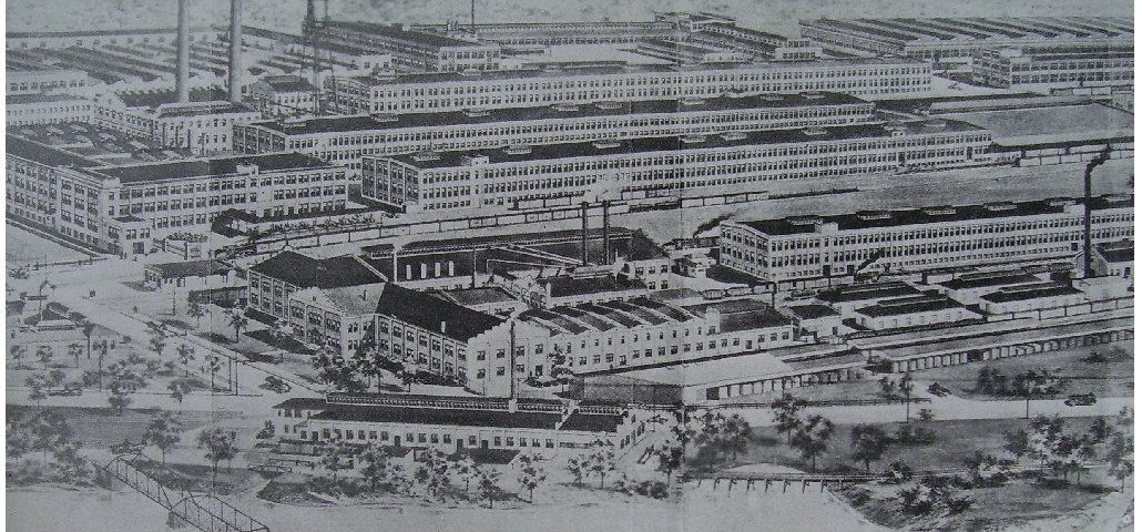 | This north view of factory #6 is from 1928 and shows some of the workers. Look at the photo above for the 1970 view of this area. |